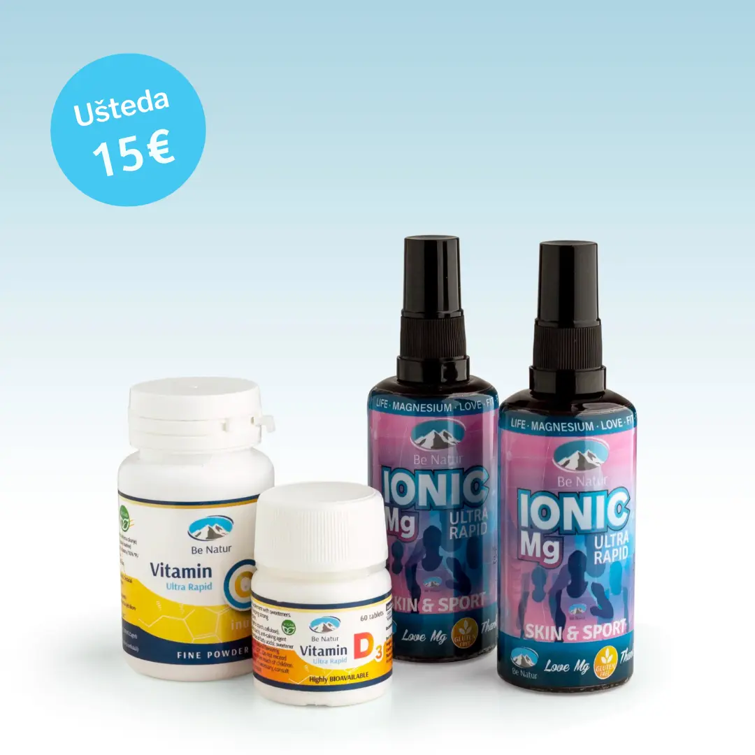 81,00 €Predstavljamo vam Be Natur Perfect Health Pack – vrhunski odabir za one koji teže optimalnom zdravlju i vitalnosti. Ovaj pažljivo kurirani paket uključuje naše najtraženije proizvode: dvostruku dozu Ionic MG Ultra Rapid SKIN&SPORT za mentalnu i tjelesnu snagu, Vitamin D3 Ultra Rapid kao vaš dnevni saveznik u održavanju vitalnosti, i Deep Sleep pomoć za nesanicu kako bi vaše noći bile mirne i vaša jutra osvježena. Svaki od ovih proizvoda dizajniran je s jedinstvenim ciljem – unaprijediti vaše zdravlje na holistički način, osiguravajući da svaki dan započnete s energijom i završite ga mirnim snom.