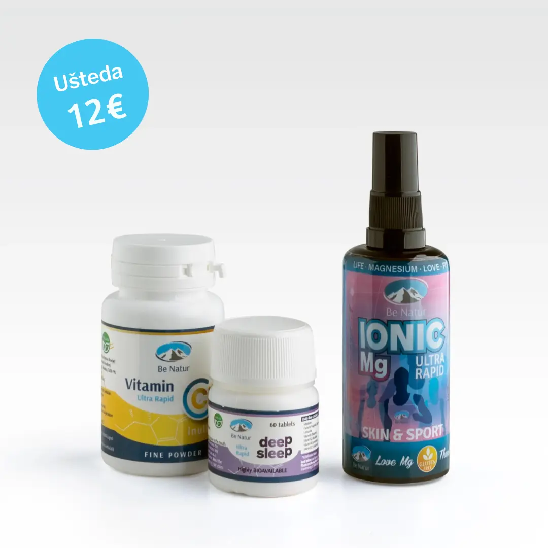 Introducing the Be Natur Fast Recovery Pack, an exclusive package designed to provide comprehensive support for your physical and mental health. This carefully selected range of products offers a complete solution for rapid recovery and long-term vitality, including support for deep sleep, boosting immunity and improving energy levels. With Be Natur Ionic MG Ultra Rapid SKINSPORT, Be Natur Deep Sleep aid for insomnia, and Be Natur Vitamin C+ Ultra Rapid with added inulin, this package is your daily dose of comprehensive care, designed to strengthen your body and mind for the challenges of modern life .
